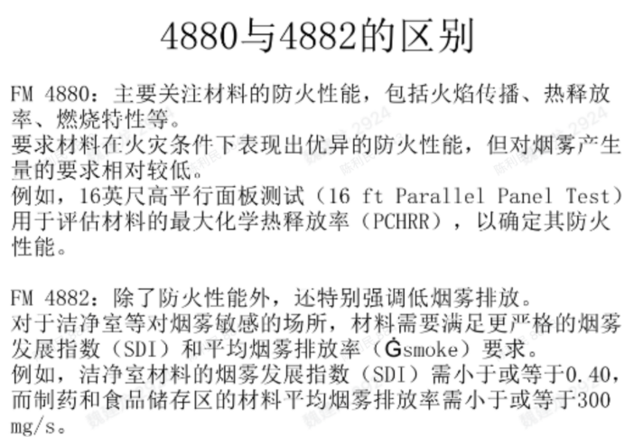 FM 4882 includes all fire performance requirements of FM 4880 while placing additional emphasis on low smoke emission.